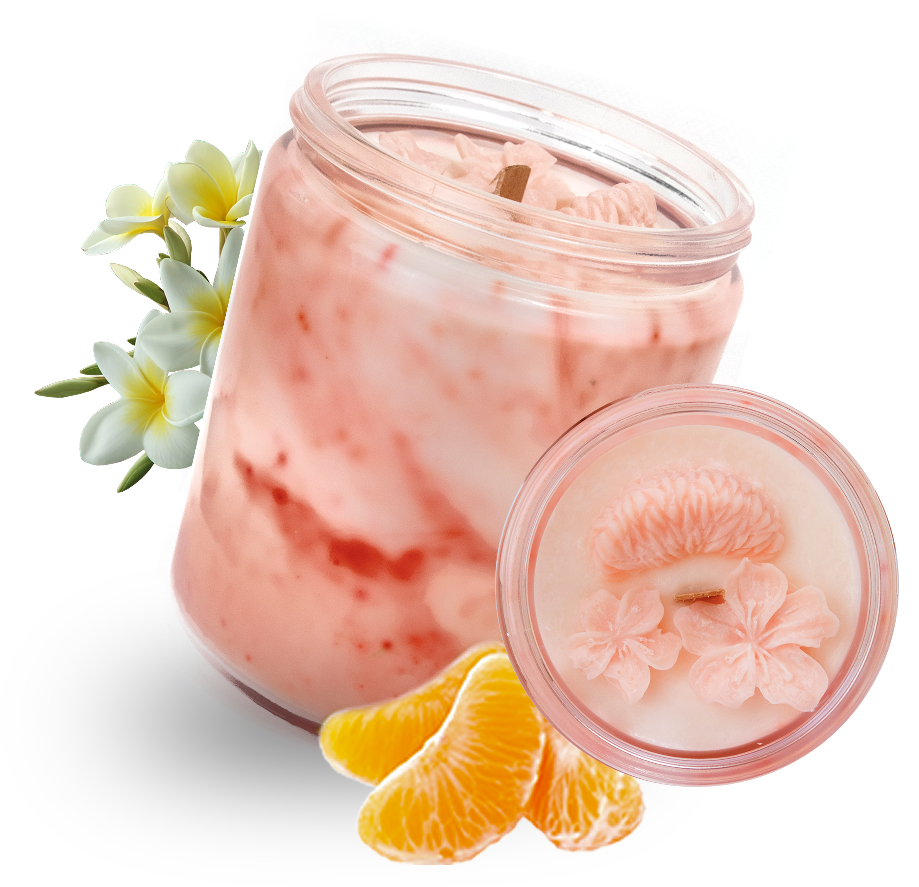 Apportez lumière et douceur à votre intérieur avec cette bougie artisanale au marbrage délicat, ornée de fleurs de cire sculptées à la main. Son parfum enchanteur mêle la fraîcheur pétillante de l’orange et du cyclamen à un cœur tropical de clémentine et de monoï, sur un fond chaleureux de musc et de vanille. En se consumant lentement, elle diffuse un halo délicat et révèle un jeu de lumières qui sublime votre décoration.